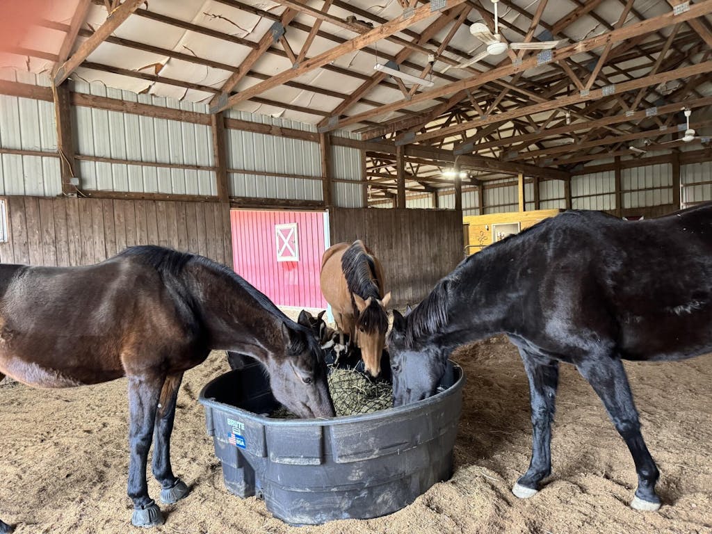 - Be cautious with shod horses and use appropriate hay rings/feeder to prevent entanglement.