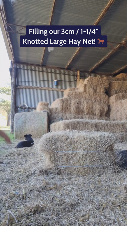 Works well for broodmares, old horses, young horses, or any horse, cow, sheep, alpaca, or goat that you are not trying to restrict hay consumption with, but still want to reduce hay wastage. You can also use less palatable, coarse, or stalky hay with this size. 6cm nets will contain the hay and stop it from being blown away, tossed around, and wasted, but has little slow feeding effect.